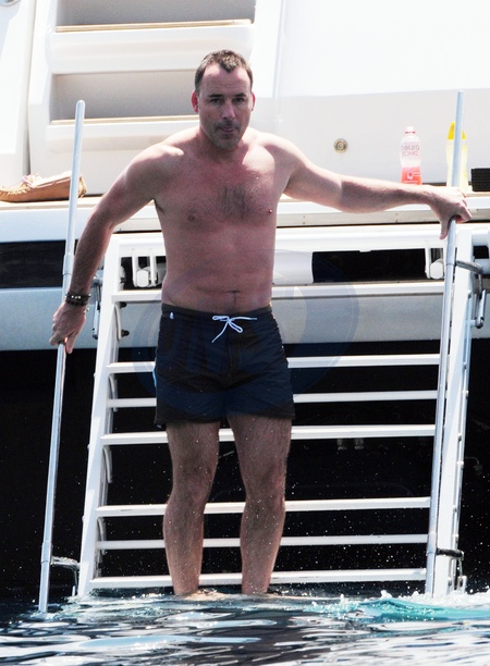 David Furnish na jachcie podczas 62.festivalu Filmowego w Cannes
