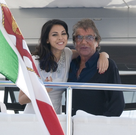 Roberto Cavalli na lodzi podczas wizyty w Cannes