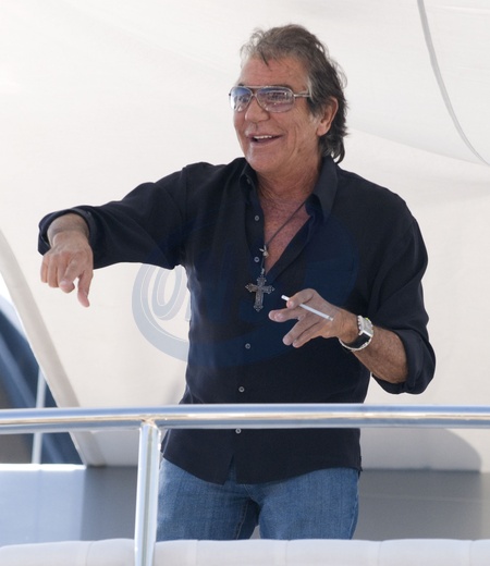 Roberto Cavalli na lodzi podczas wizyty w Cannes