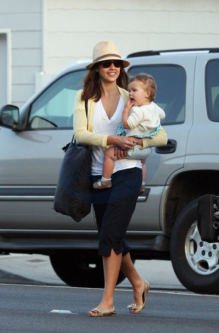 Jessica Alba z rodzina idzie na plaze, Malibu
