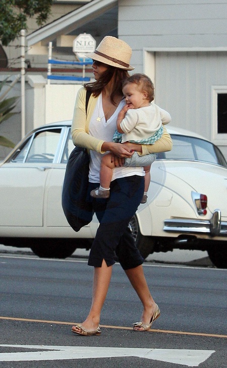 Jessica Alba z rodzina idzie na plaze, Malibu