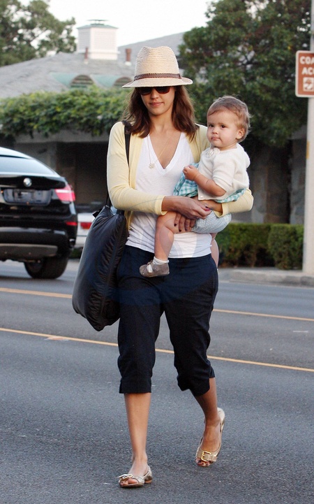 Jessica Alba z rodzina idzie na plaze, Malibu