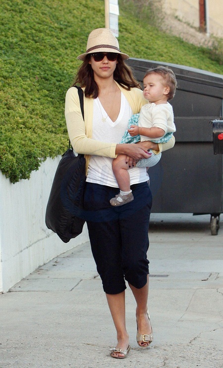 Jessica Alba z rodzina idzie na plaze, Malibu