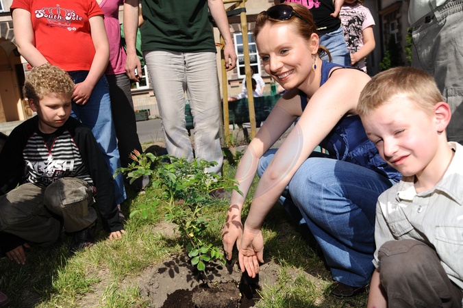 Ekologiczny Dzien Matki ktory zorganizowaly Fundacja Nasza Ziemia i Fundacja Sprzatanie Swiata Polska przed Instytutem Gluchoniemych im Falkowskiego Warszawa