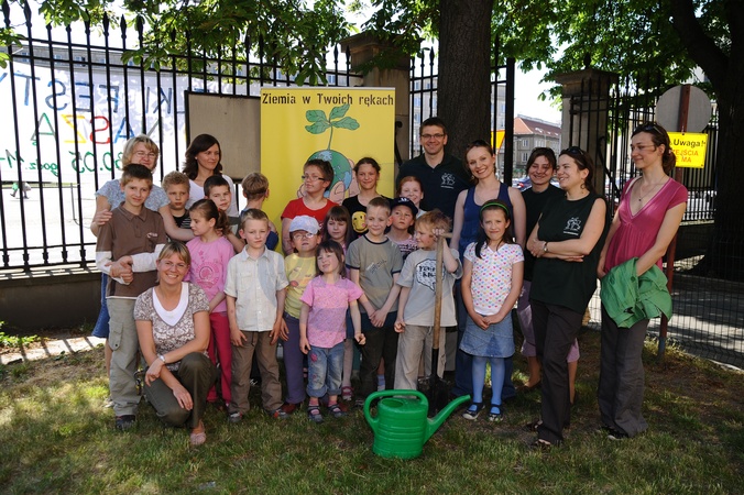 Ekologiczny Dzien Matki ktory zorganizowaly Fundacja Nasza Ziemia i Fundacja Sprzatanie Swiata Polska przed Instytutem Gluchoniemych im Falkowskiego Warszawa