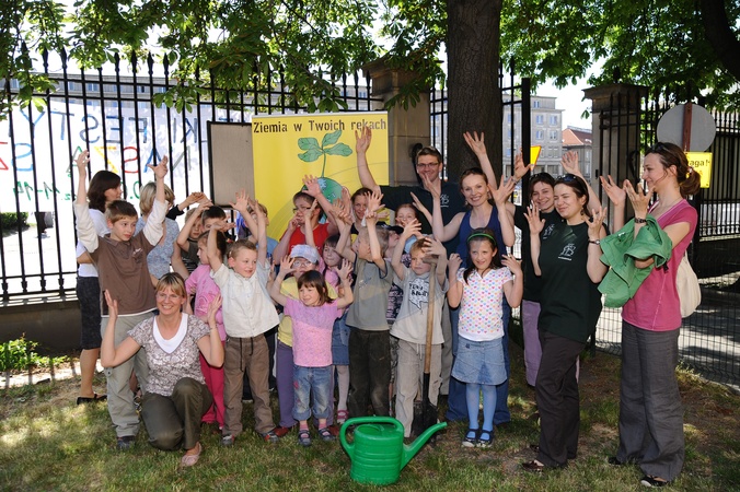 Ekologiczny Dzien Matki ktory zorganizowaly Fundacja Nasza Ziemia i Fundacja Sprzatanie Swiata Polska przed Instytutem Gluchoniemych im Falkowskiego Warszawa