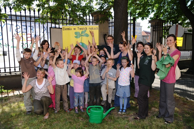 Ekologiczny Dzien Matki ktory zorganizowaly Fundacja Nasza Ziemia i Fundacja Sprzatanie Swiata Polska przed Instytutem Gluchoniemych im Falkowskiego Warszawa