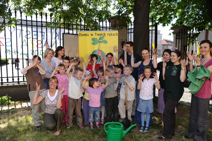 Ekologiczny Dzien Matki ktory zorganizowaly Fundacja Nasza Ziemia i Fundacja Sprzatanie Swiata Polska przed Instytutem Gluchoniemych im Falkowskiego Warszawa