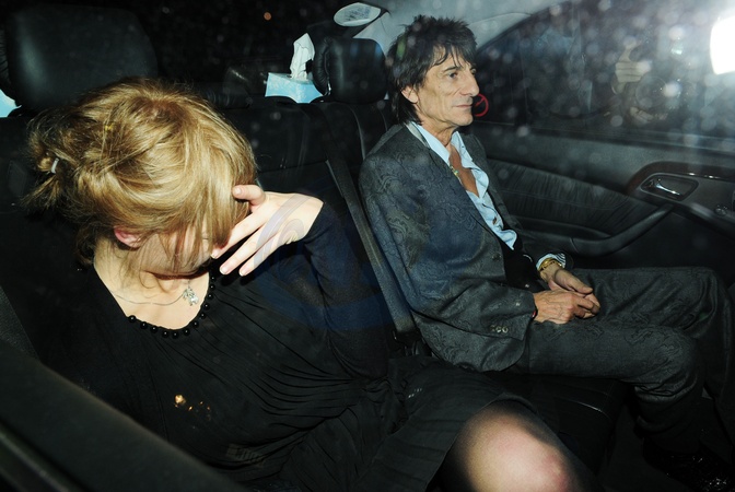 Ronnie Wood z dziewczyna Ekaterina Ivanova wychodzi z nocnego klubu, Londyn