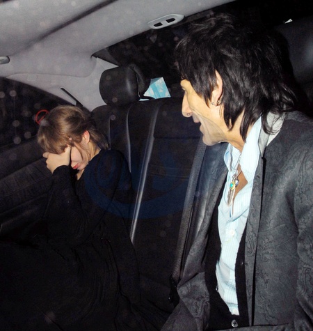 Ronnie Wood z dziewczyna Ekaterina Ivanova wychodzi z nocnego klubu, Londyn