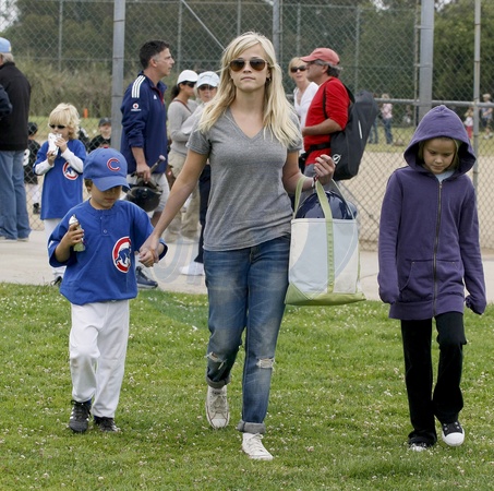 Reese Witherspoon na meczu Malej Ligi, gdzie gra jej syn, Brentwood