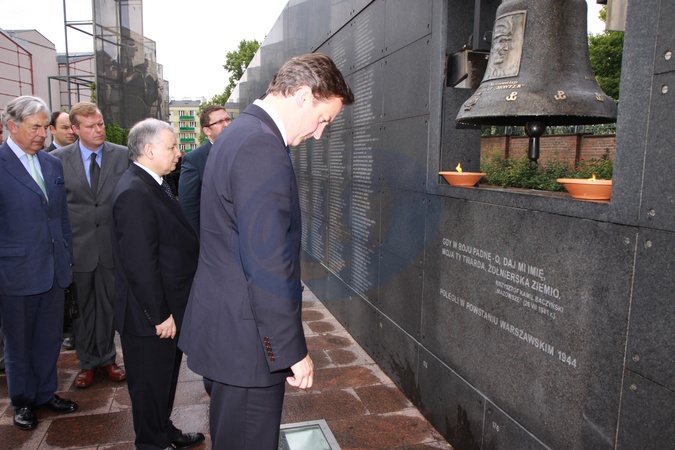 David Cameron i Jaroslaw Kaczynski zwiedzaja Muzeum Powstania Warszawskiego