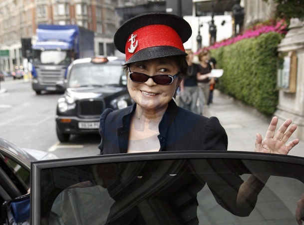 Yoko Ono wychodzi z The Manderin Hotel, Londyn