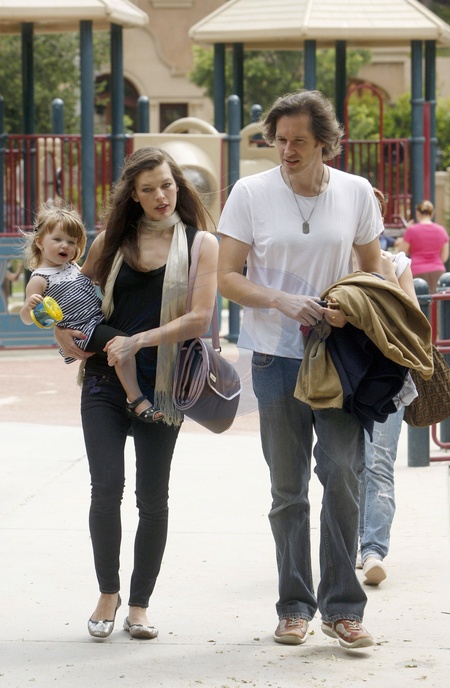 Milla Jovovich z narzeczonym i corka na placu zabaw, Beverly Hills