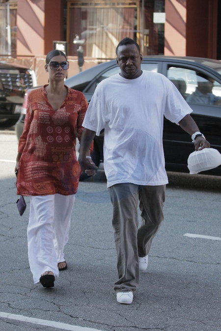 Bobby Brown z dziewczyna wychodzi z restauracji w Beverly Hills