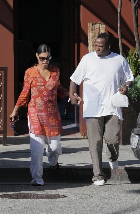 Bobby Brown z dziewczyna wychodzi z restauracji w Beverly Hills