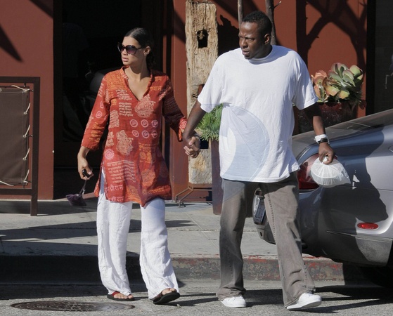 Bobby Brown z dziewczyna wychodzi z restauracji w Beverly Hills
