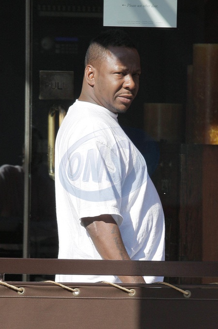 Bobby Brown z dziewczyna wychodzi z restauracji w Beverly Hills