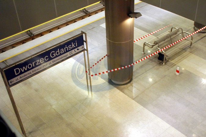 Stacja metra Dworzec Gdanski. Cwiczenia sluzb ratowniczych, policji, strazy pozarnej, pirotechnikow. Podczas cwiczen symulowano rozbrojenie bomby podlozonej przez terrorystow na stacji metra .