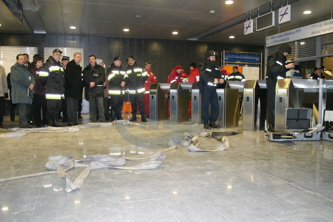 Stacja metra Dworzec Gdanski. Cwiczenia sluzb ratowniczych, policji, strazy pozarnej, pirotechnikow. Podczas cwiczen symulowano rozbrojenie bomby podlozonej przez terrorystow na stacji metra .