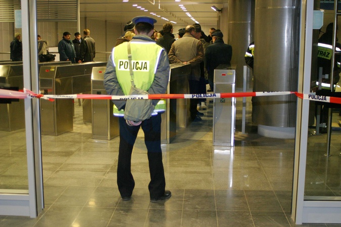 Stacja metra Dworzec Gdanski. Cwiczenia sluzb ratowniczych, policji, strazy pozarnej, pirotechnikow. Podczas cwiczen symulowano rozbrojenie bomby podlozonej przez terrorystow na stacji metra .