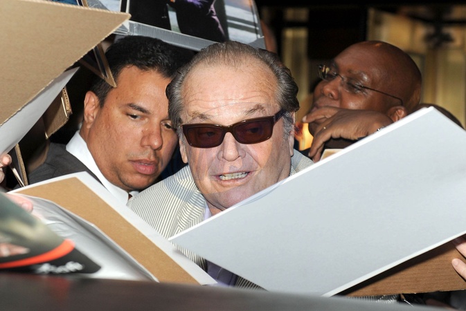 Jack Nicholson rozdaje autografy wychodzac z hotelu w Nowym Jorku