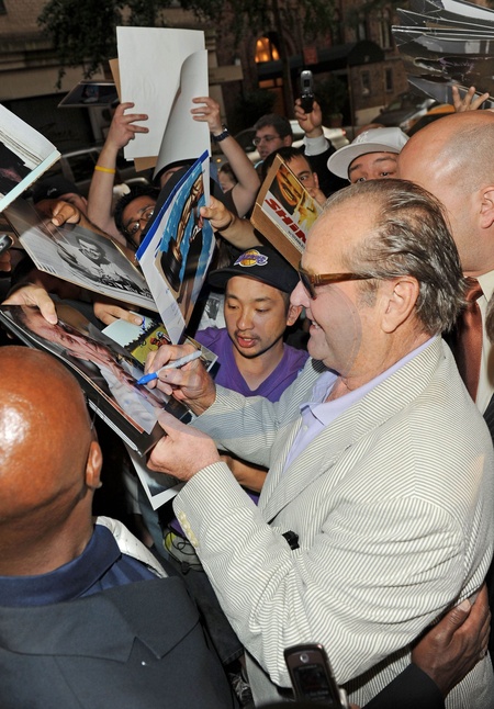 Jack Nicholson rozdaje autografy wychodzac z hotelu w Nowym Jorku