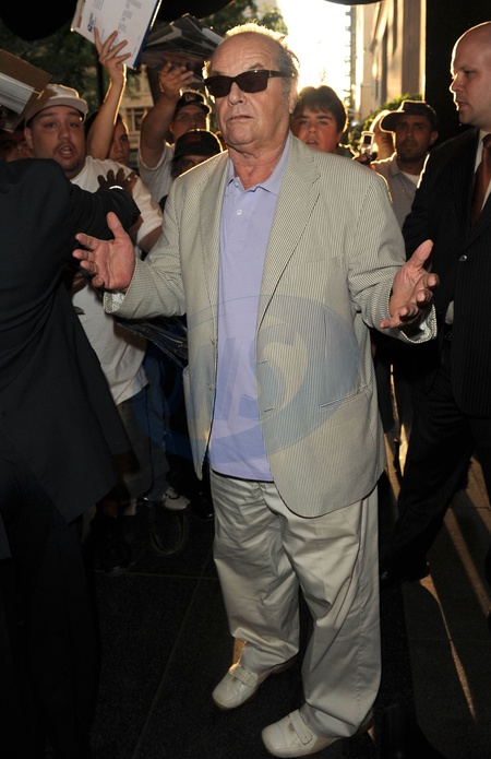 Jack Nicholson rozdaje autografy wychodzac z hotelu w Nowym Jorku