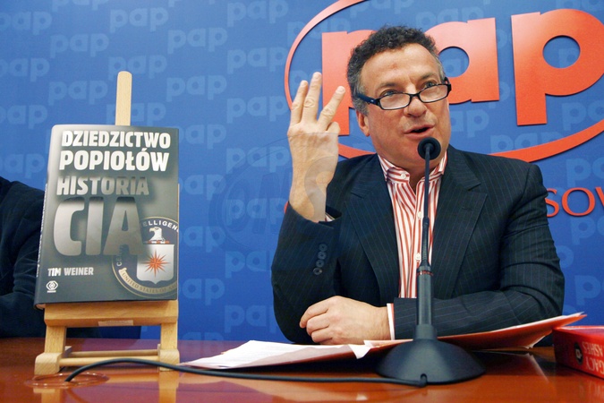 Wizyta w Polsce nowojorskiego reportera i laureata Nagrody Pulitzera, Tima Weinera - autora ksiazki pt. Dziedzictwo popiolow. Historia CIA (Legacy of Ashe. The History of the CIA). Konferencja prasowa w siedzibie PAP w Warszawie