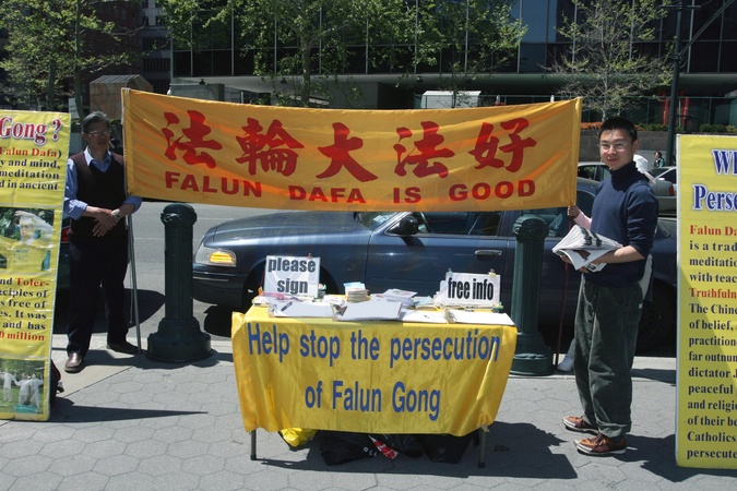 wyznawcy Falun Gong protestuja na ulicach Nowego Jorku