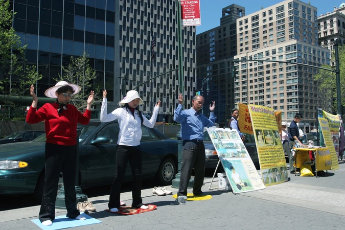 wyznawcy Falun Gong protestuja na ulicach Nowego Jorku