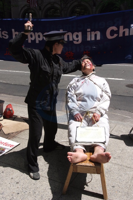 wyznawcy Falun Gong protestuja na ulicach Nowego Jorku