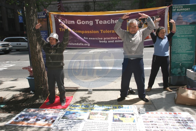 wyznawcy Falun Gong protestuja na ulicach Nowego Jorku