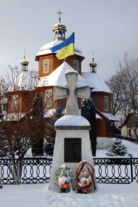 cerkiew i pomnik band UPA w Boryslawiu na Ukrainie