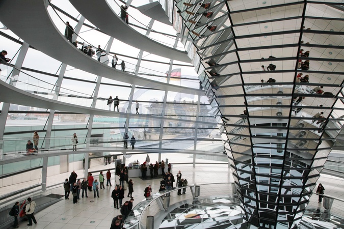 Wnetrze 23-metrowej kopuly wienczacej Reichstag