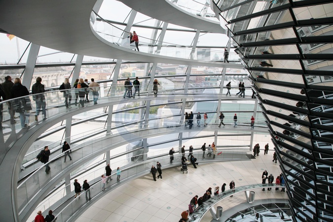 Wnetrze 23-metrowej kopuly wienczacej Reichstag