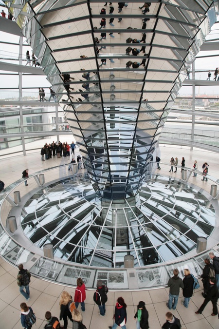 Wnetrze 23-metrowej kopuly wienczacej Reichstag