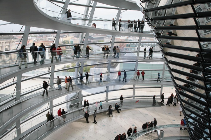 Wnetrze 23-metrowej kopuly wienczacej Reichstag