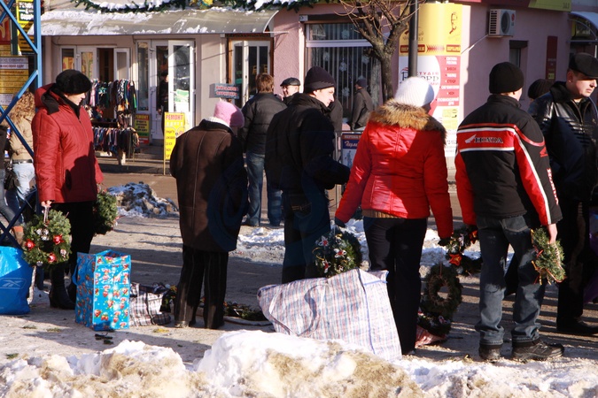 noworoczne ozdoby w miescie Iwano Frankowsk na Ukrainie