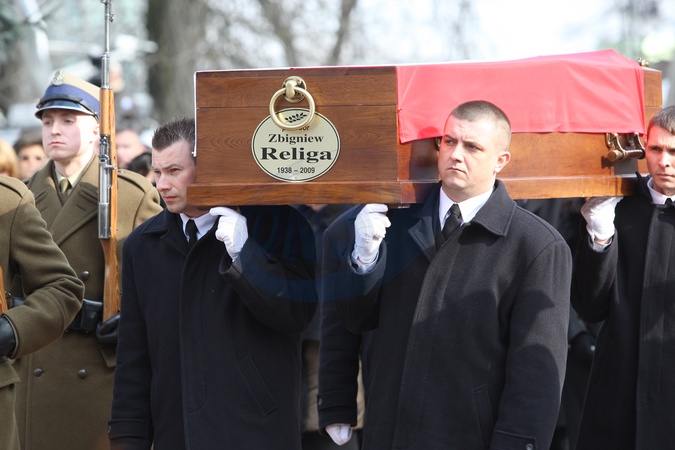 Pogrzeb profesora Zbigniewa Religi na wojskowym cmentarzu (Powazki) w alei Zasluzonych
