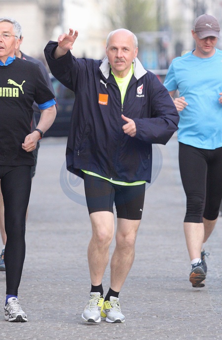 Tomasz Zubilewicz biega po Krakowskim Przedmiesciu, Warszawa 2009