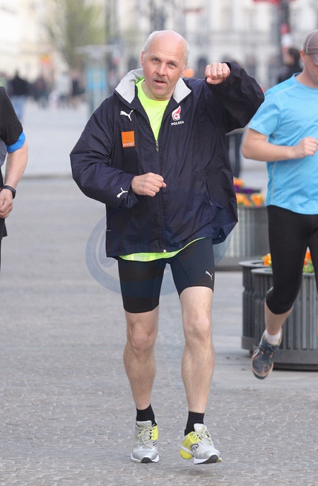 Tomasz Zubilewicz biega po Krakowskim Przedmiesciu, Warszawa 2009