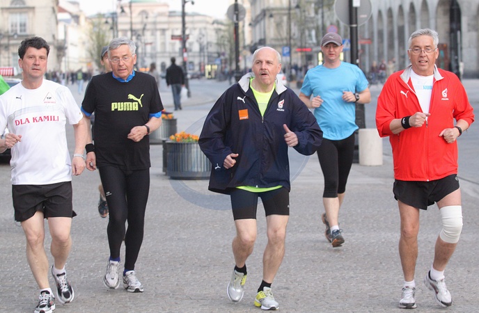 Tomasz Zubilewicz biega po Krakowskim Przedmiesciu, Warszawa 2009