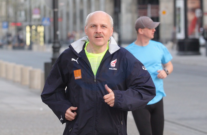 Tomasz Zubilewicz biega po Krakowskim Przedmiesciu, Warszawa 2009