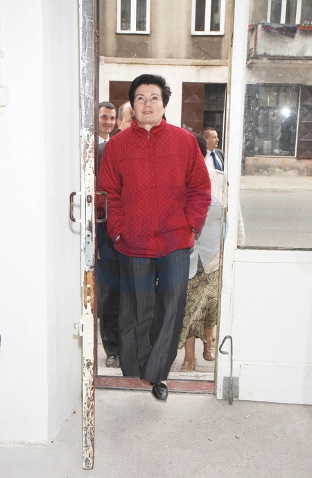 Prezydent Warszawy Hanna Gronkiewicz-Waltz spaceruje po ulicy po Brzeskiej