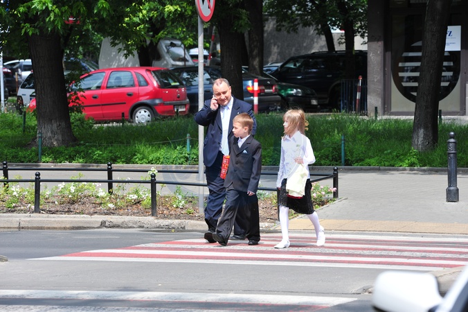 Przemyslaw Edgar Gosiewski odbiera dzieci ze szkoly po zakonczeniu roku szkolnego, Warszawa 2009