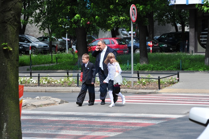 Przemyslaw Edgar Gosiewski odbiera dzieci ze szkoly po zakonczeniu roku szkolnego, Warszawa 2009