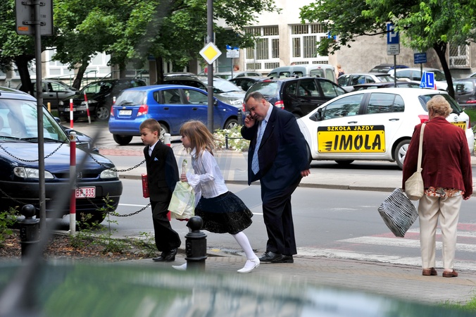 Przemyslaw Edgar Gosiewski odbiera dzieci ze szkoly po zakonczeniu roku szkolnego, Warszawa 2009