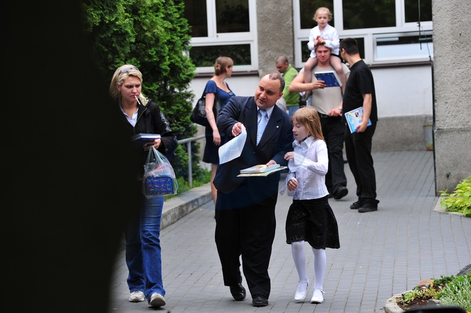 Przemyslaw Edgar Gosiewski odbiera dzieci ze szkoly po zakonczeniu roku szkolnego, Warszawa 2009