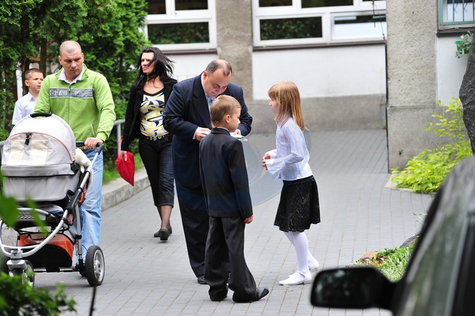 Przemyslaw Edgar Gosiewski odbiera dzieci ze szkoly po zakonczeniu roku szkolnego, Warszawa 2009